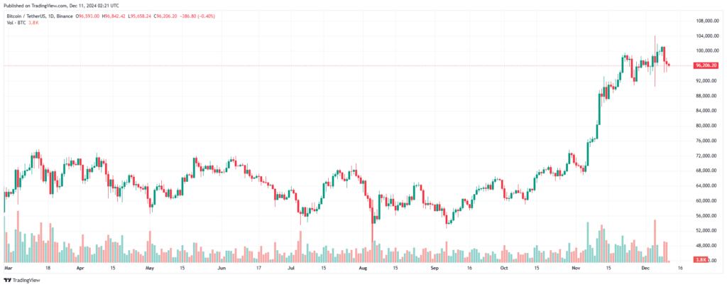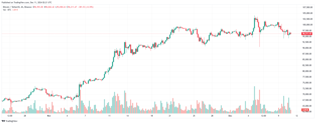 Giá Bitcoin Ngày 11/12: Bitcoin Tiếp Tục Trượt Xuống Mức $96,000