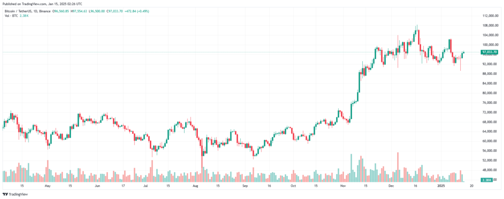 Vào ngày 14 tháng 1, Bitcoin đã đạt mức giá 97.000 USD khi khởi đầu phiên giao dịch trên thị trường phố Wall. Sự gia tăng này được thúc đẩy bởi các chỉ số kinh tế tích cực xuất phát từ Hoa Kỳ, cho thấy triển vọng lạc quan của nền kinh tế lớn nhất thế giới.