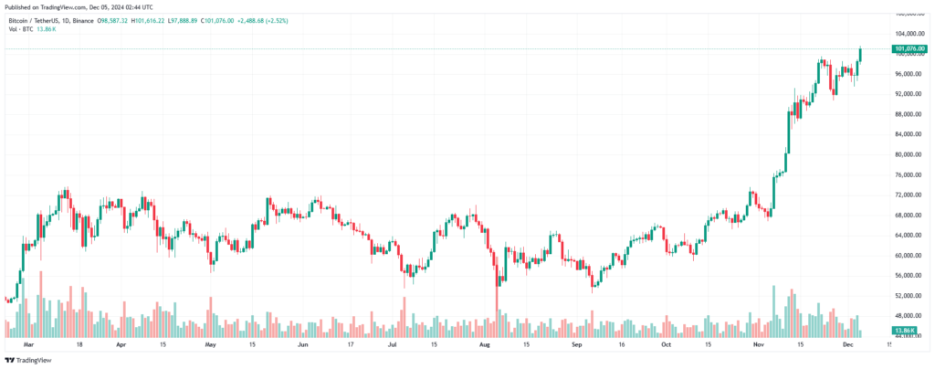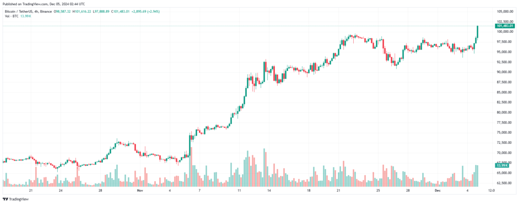 Giá Bitcoin ngày 5/12: Bitcoin Chạm Ngưỡng $100.000
